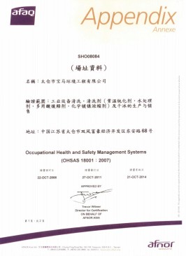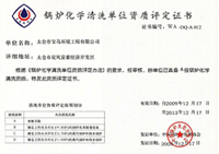 已經(jīng)獲得最嚴格的法國AFAQ-EAQA ISO9001、ISO14001、OHSAS18001認證,取得電廠鍋爐化學清洗A級資質。